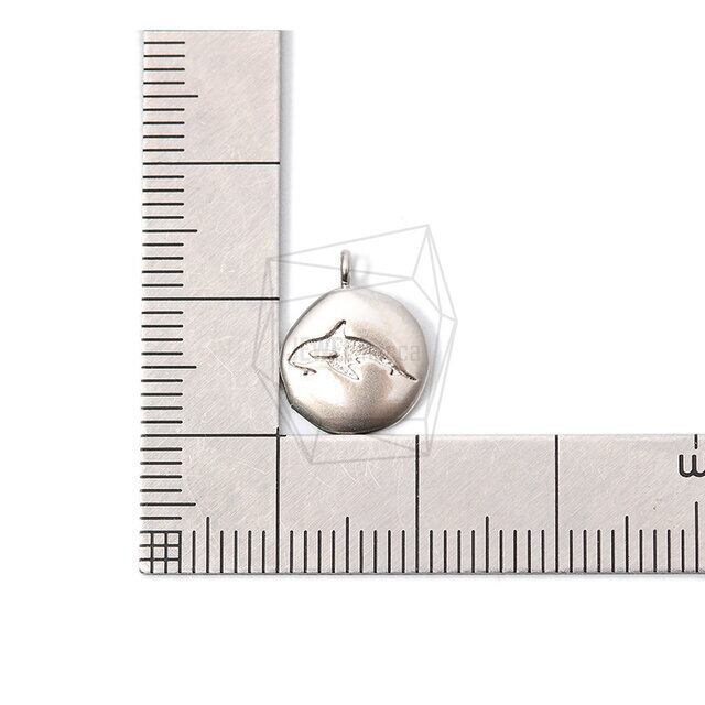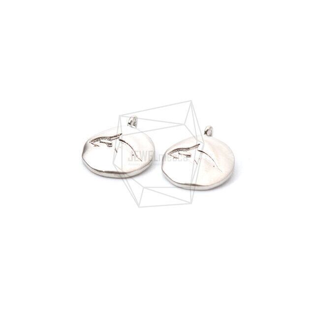 PDT-1955-MR/2PCS/Round Shark Pendant/10mm X 13mm/Matte Rhodium Plated Over Brass