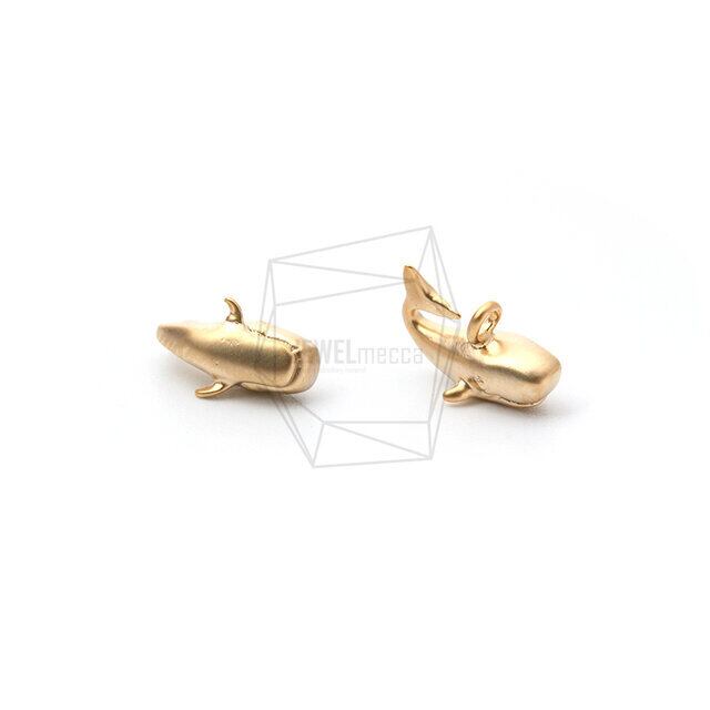 PDT-1956-MG/2PCS/Whale Pendant/11mm X 8mm/Matte Gold Plated Over Brass