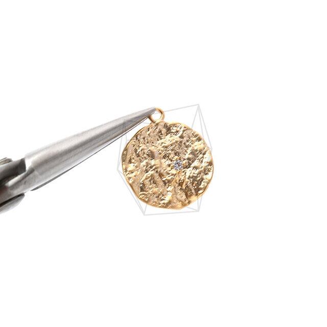 PDT-1958-MG/2PCS/Hammered Round Pendant/13mm X 17mm/Matte Gold Plated Over Brass