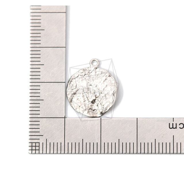 PDT-1958-MR/2PCS/Hammered Round Pendant/13mm X 17mm/Matte Rhodium Plated Over Brass