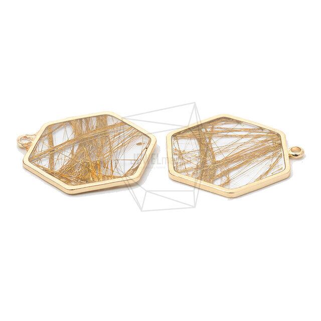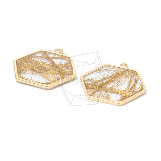 BSC-638-G/2PCS/Epoxy Hexagon Pendant/25mm X 25mm/Gold Plated over Brass