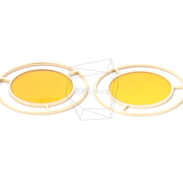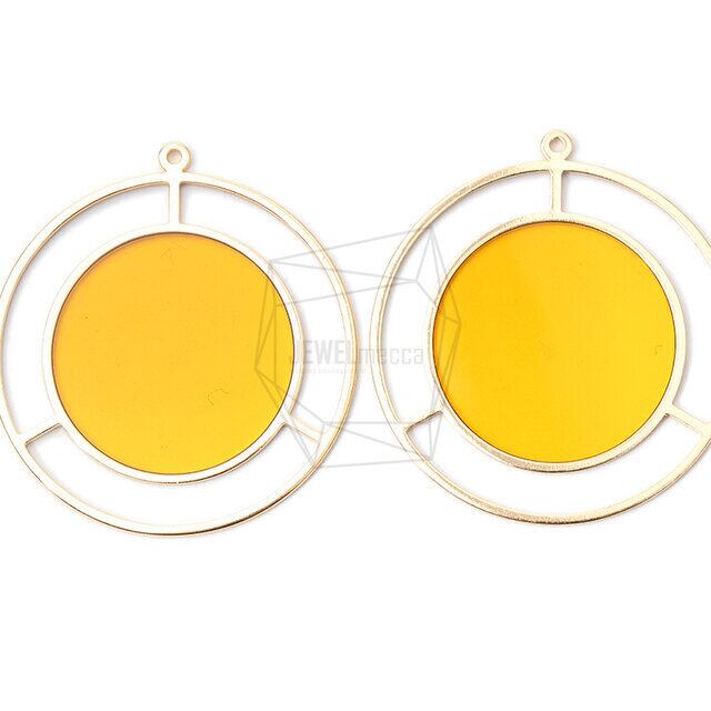BSC-646-G/2PCS/Epoxy circle Pendant/35mm X 38mm/Gold Plated over Brass