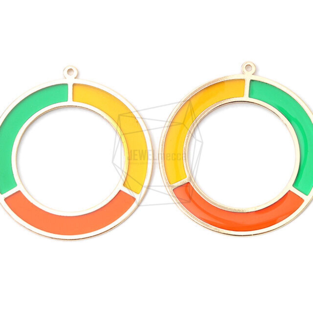 BSC-647-G/2PCS/Epoxy circle Pendant/35mm X 38mm/Gold Plated over Brass