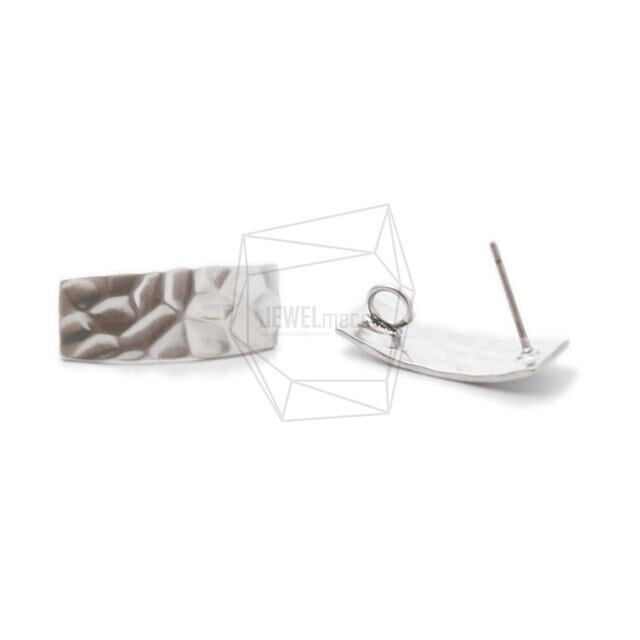 ERG-990-MR/2PCS/Hammered Square Curve Post Earrings/8mm X 20mm/Matte Rhodium Plated Over Brass,Stainless Post