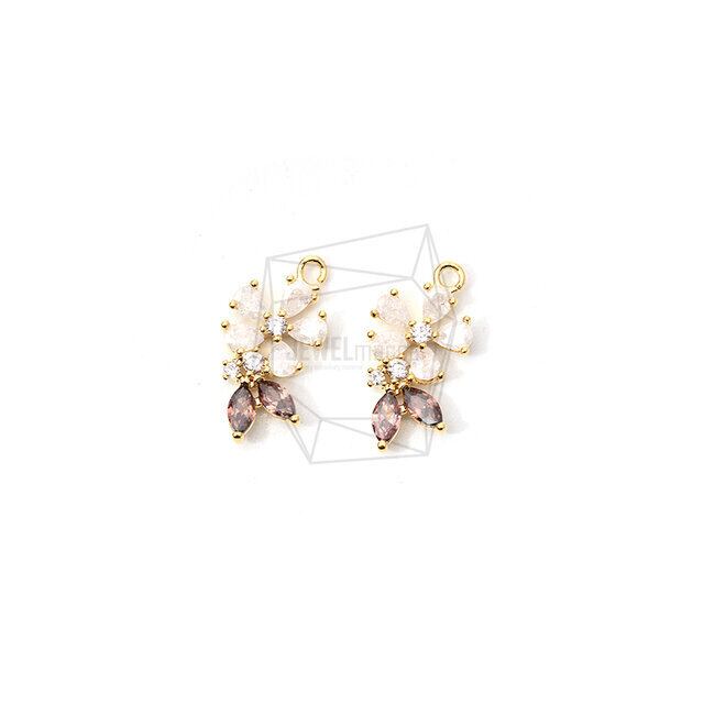 PDT-1978-G/2PCS/Cubic zirconia Pendant/8mm X 15mm/Gold Plated Over Brass, Cubic Zirconia