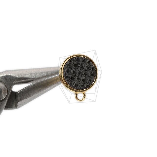 ERG-992-G/2Pcs-Round Leatherette Earring/12mm x 15mm /Gold Plated over Brass,Titanium post