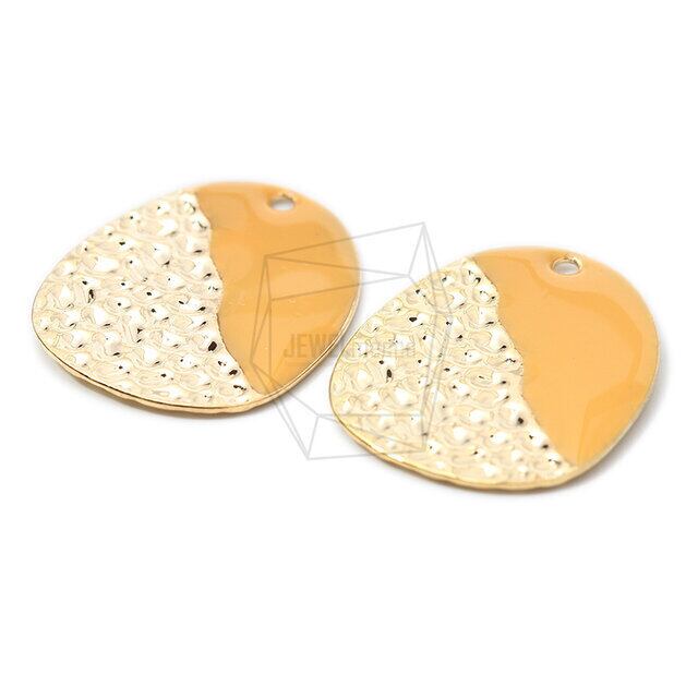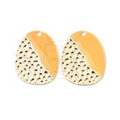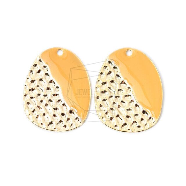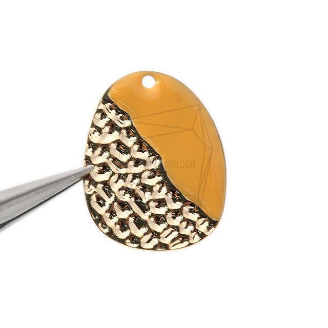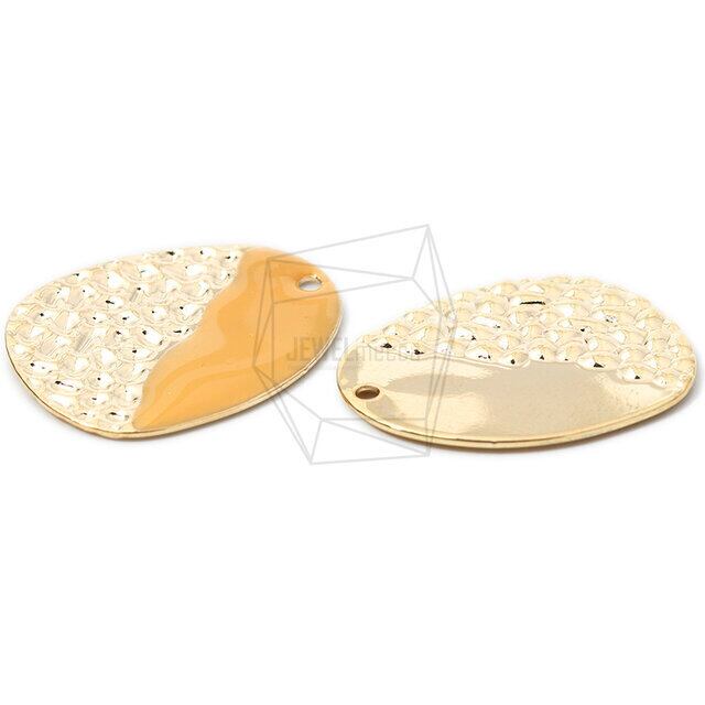 PDT-1993-G/2PCS/oval Hammered Texture&Epoxy Pendant/23mm X 29mm/Gold Plated Over Brass