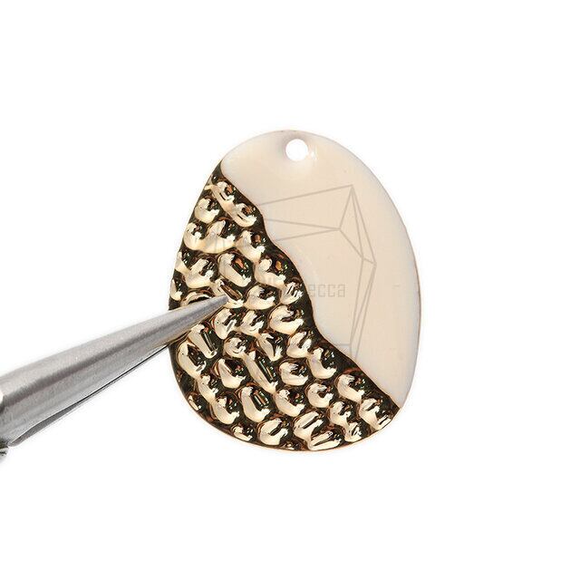 PDT-1995-G/2PCS/oval Hammered Texture&Epoxy Pendant/23mm X 29mm/Gold Plated Over Brass