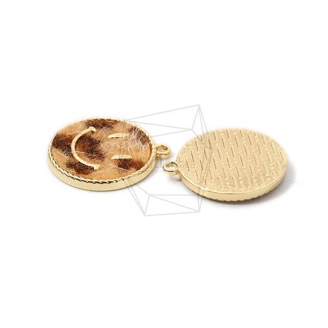 PDT-2006-G/4Pcs-Round Smile Pendant/18mm x 20mm /Gold Plated over Brass,fabric