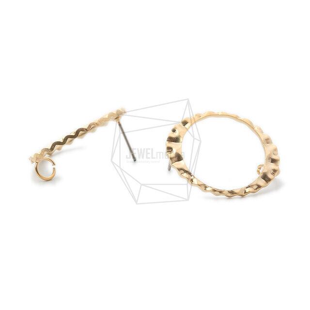 ERG-1000-MG/2PCS/Hammered Round Post Earrings/19mm X 25mm/Matte Gold Plated Over Brass,Titanium Post