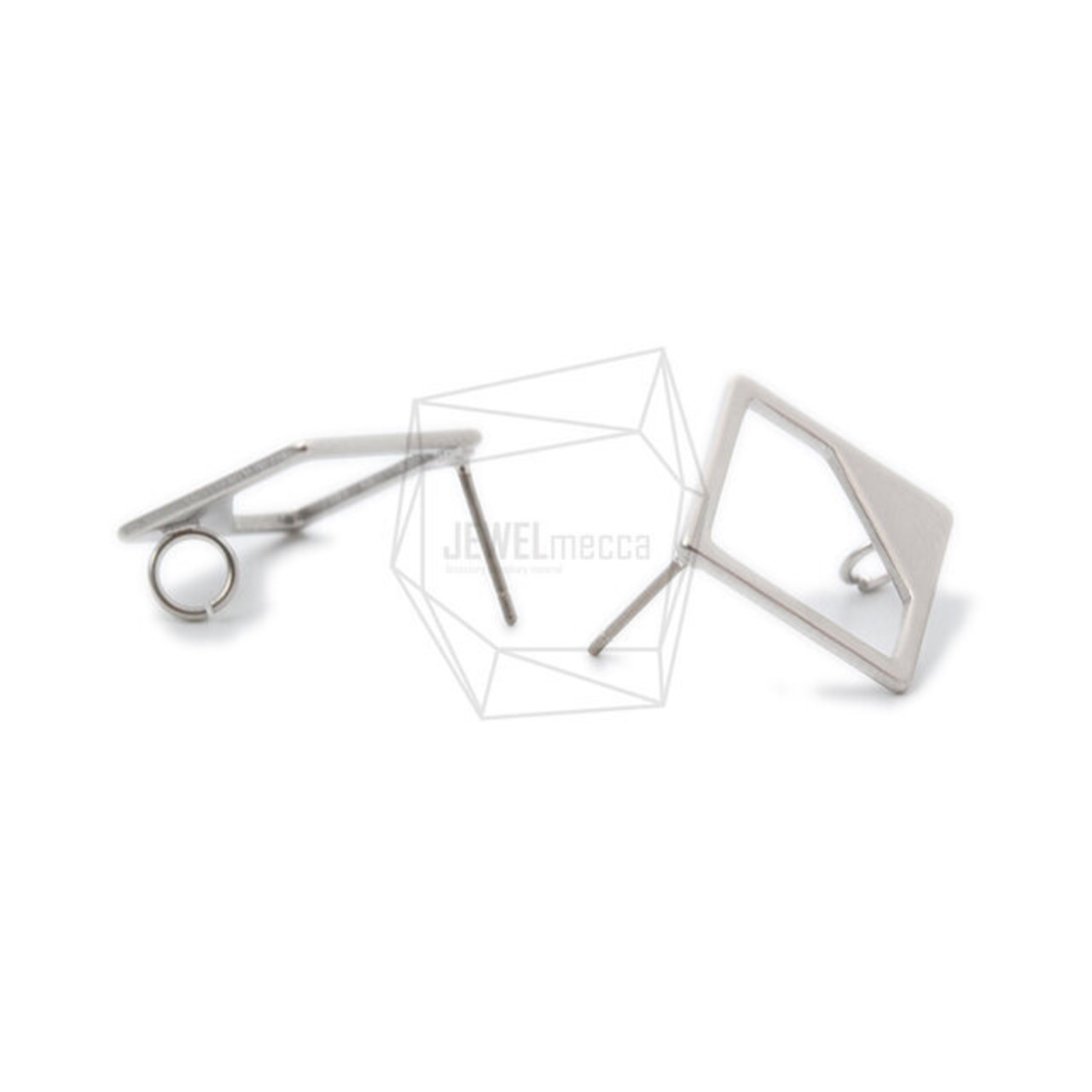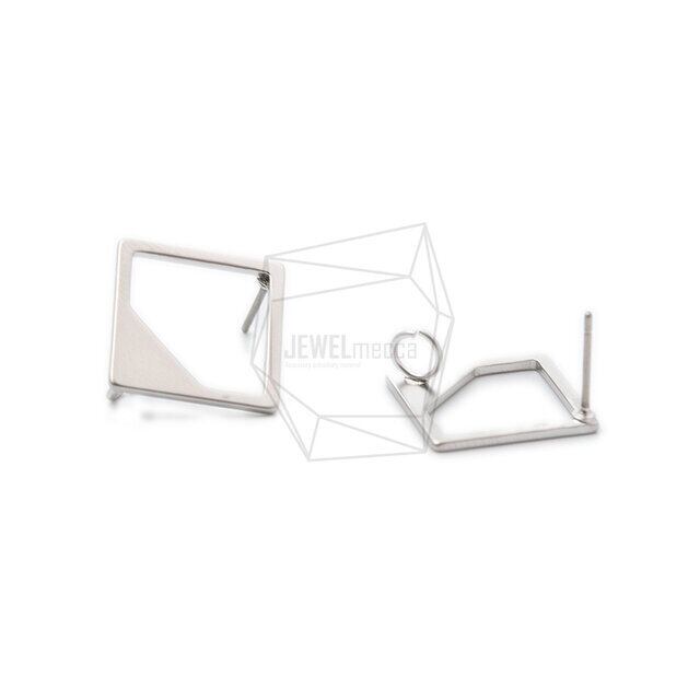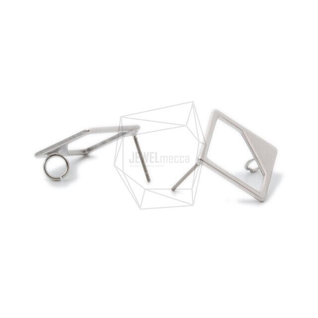 ERG-1001-MR/2PCS/Diamond Post Earrings/20mm X 20mm/Matte Rhodium Plated Over Brass,Titanium Post