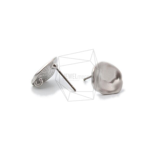 ERG-1002-MR/2PCS/Hammered Round Post Earrings/11mm X 13mm/Matte Rhodium Plated Over Brass,Titanium Post