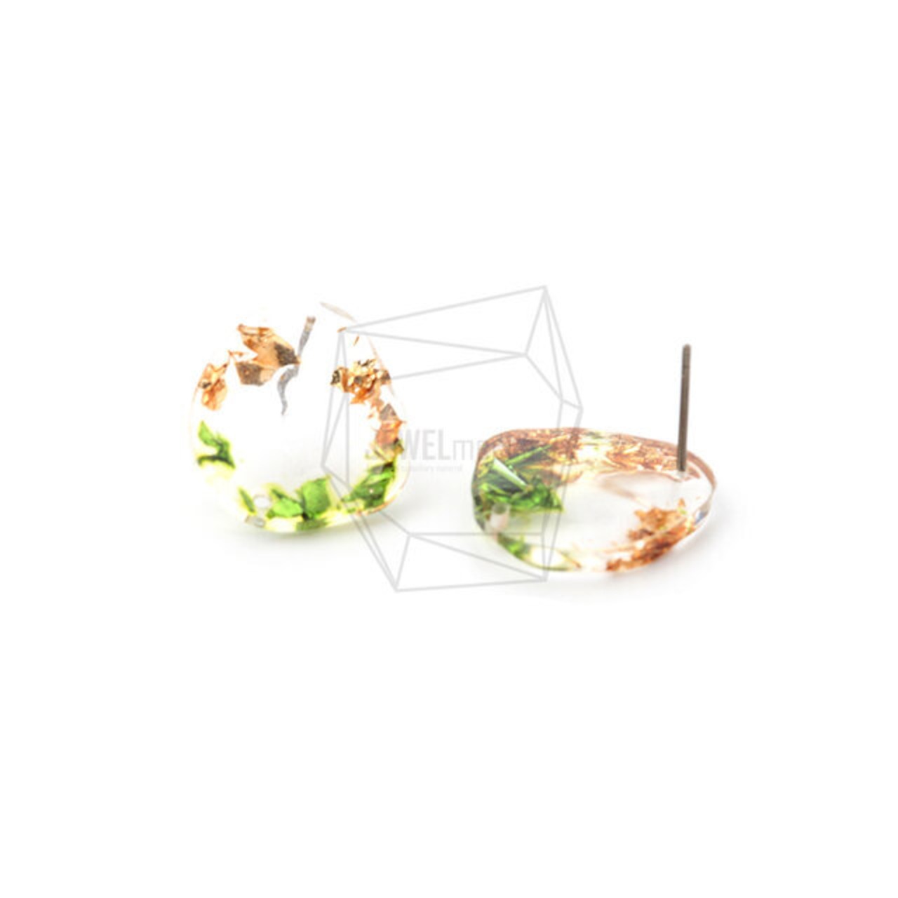 ERG-1017-G/2PCS/Epoxy Oval Post Earrings/18mm X 18mm/Epoxy,Titanium Post