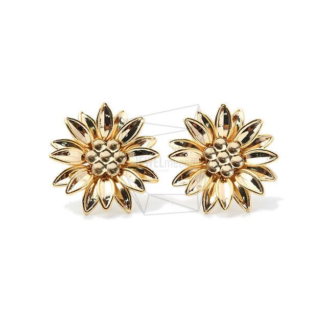 ERG-976-G/2PCS/Sunflower Ear Post/22mm x 22mm/Gold Plated over Brass