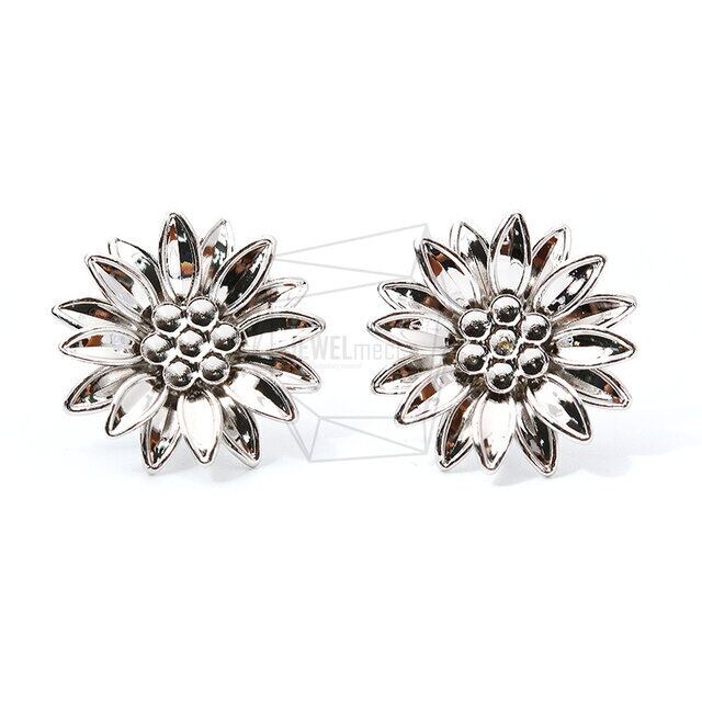 ERG-976-R/2PCS/Sunflower Ear Post/22mm x 22mm/Rhodium Plated over Brass