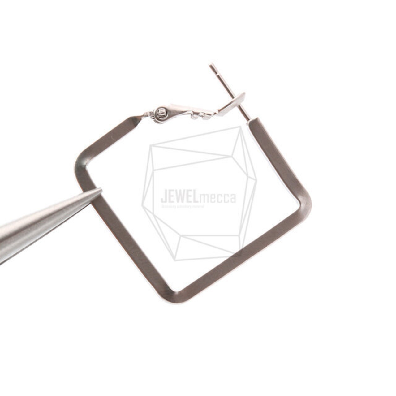 ERG-1048-MR/2PCS/Square Ear Post/24mm x 24mm/Matte Rhodium Plated over Brass
