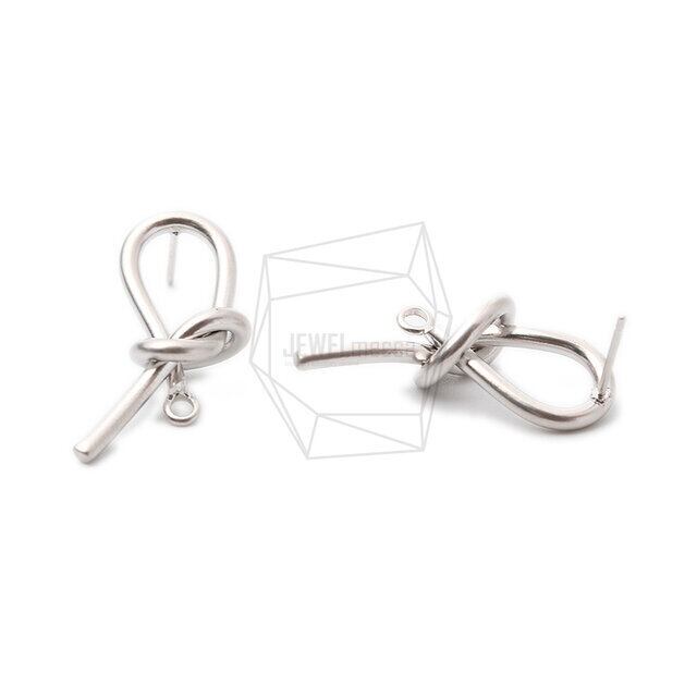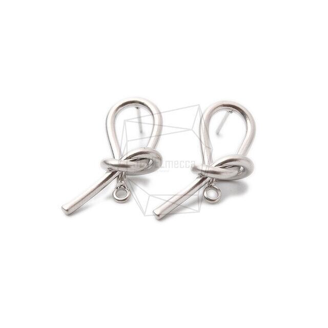 ERG-1023-MR/2PCS/Knot Post Earrings/19mm X 28mm/Matte Rhodium Plated Over Brass