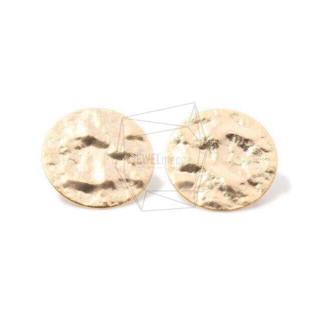ERG-1028-MG/2PCS/Hammered Round Post Earrings/24mm X 24mm/Matte Gold Plated Over Brass