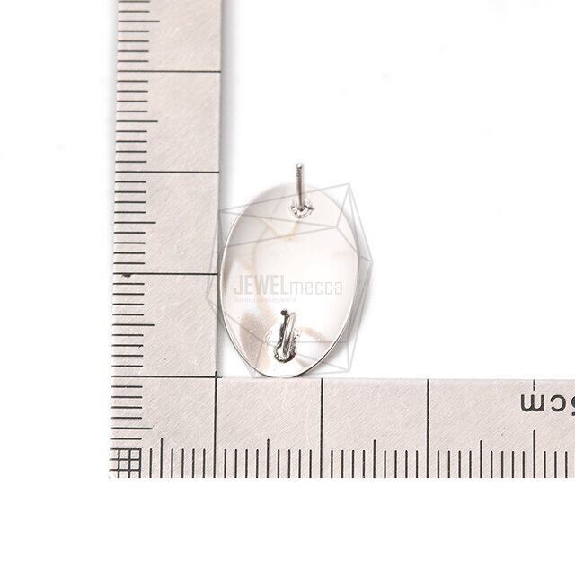 ERG-1036-MR/2PCS/Curve Oval Post Earrings/12mm X 19mm/Matte Rhodium Plated Over Brass