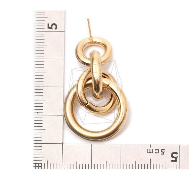 ERG-1038-MG/2PCS/Linked Circle Earrings Post Earrings/22mm X 38mm/Matte Gold Plated Over Brass