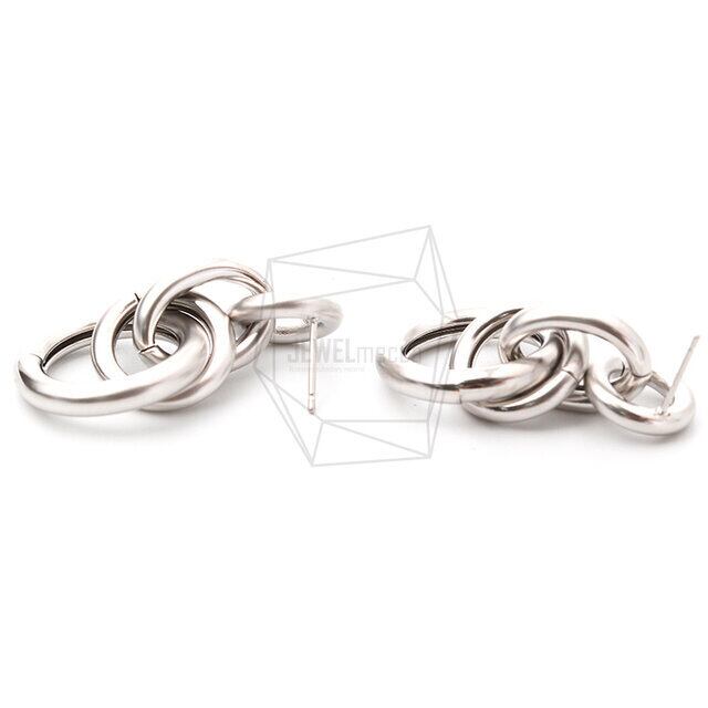ERG-1038-MR/2PCS/Linked Circle Earrings Post Earrings/22mm X 38mm/Matte Rhodium Plated Over Brass