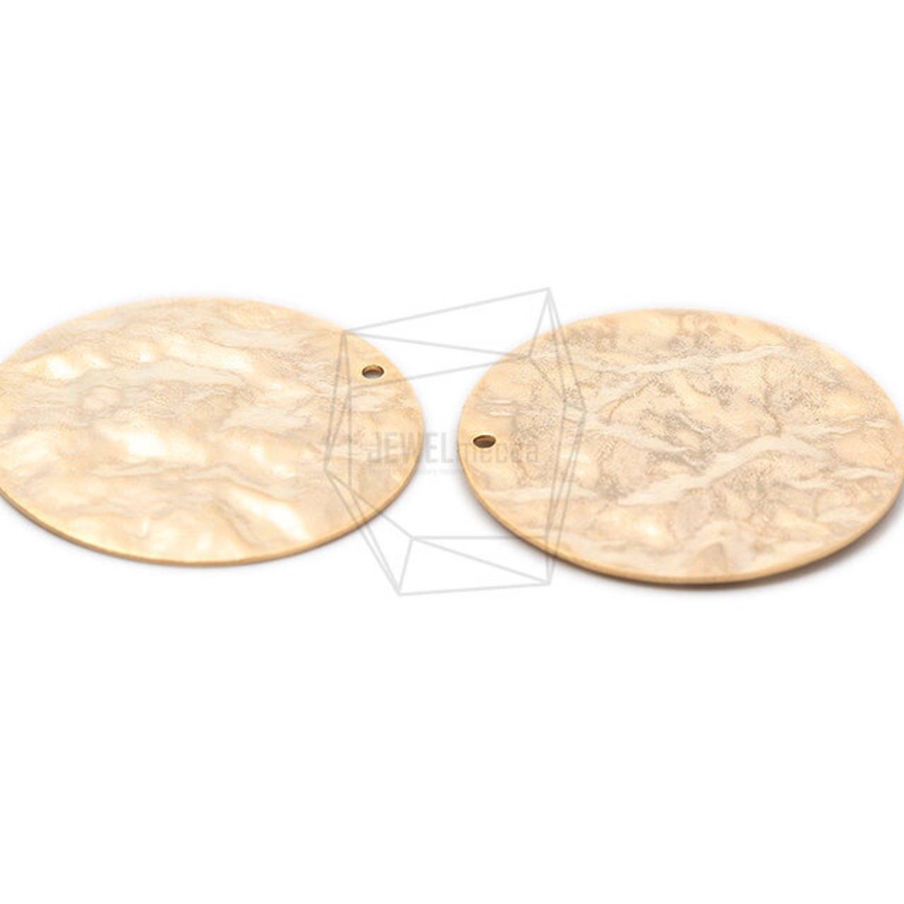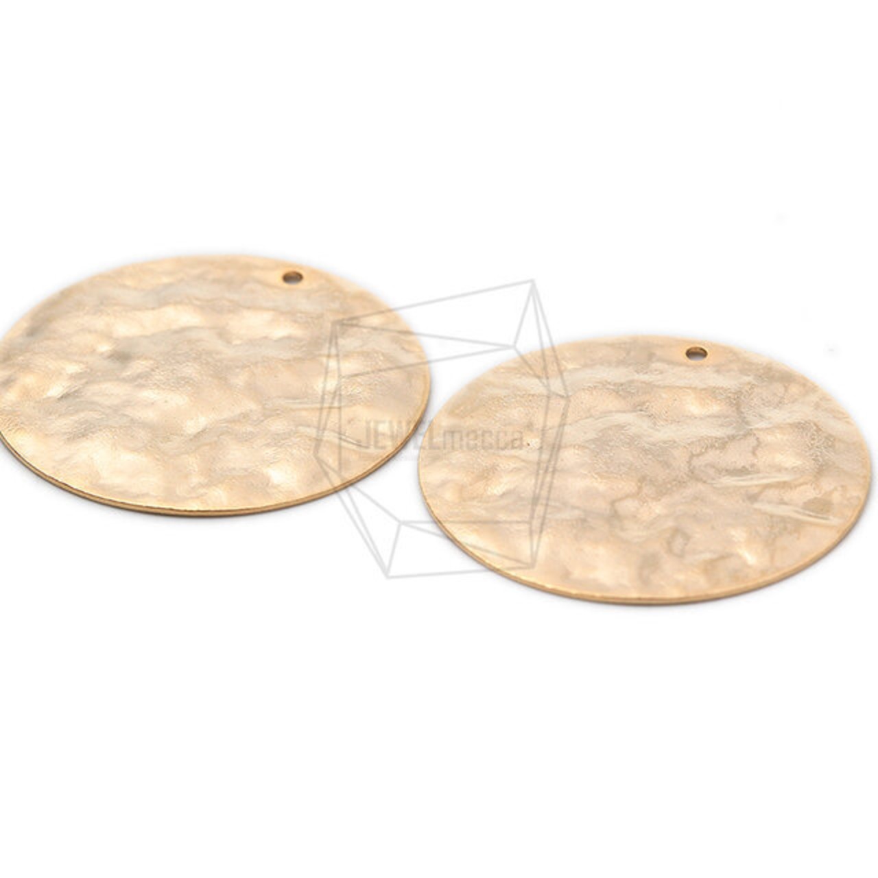 PDT-2012-MG/2PCS/Hammered Circle Disc Pendant/30mm X 30mm/Matte Gold Plated Over Brass