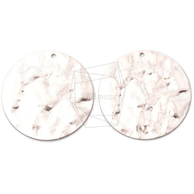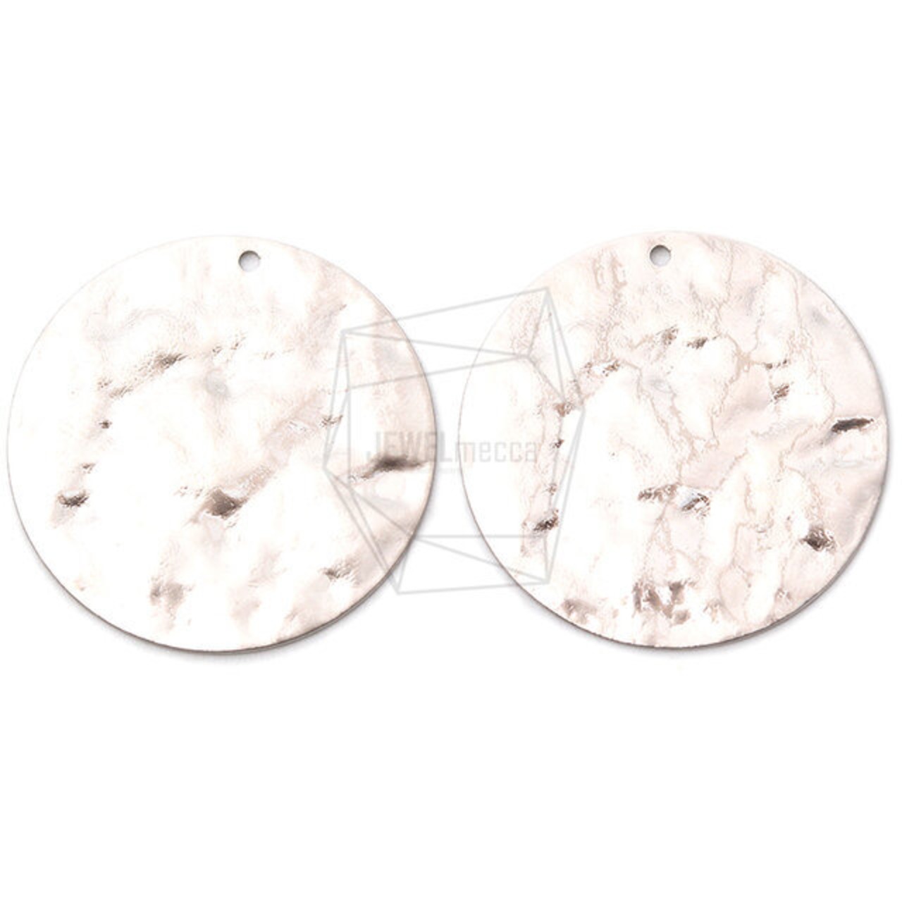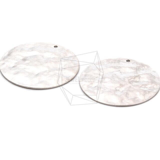 PDT-2012-MR/2PCS/Hammered Circle Disc Pendant/30mm X 30mm/Matte Rhodium Plated Over Brass