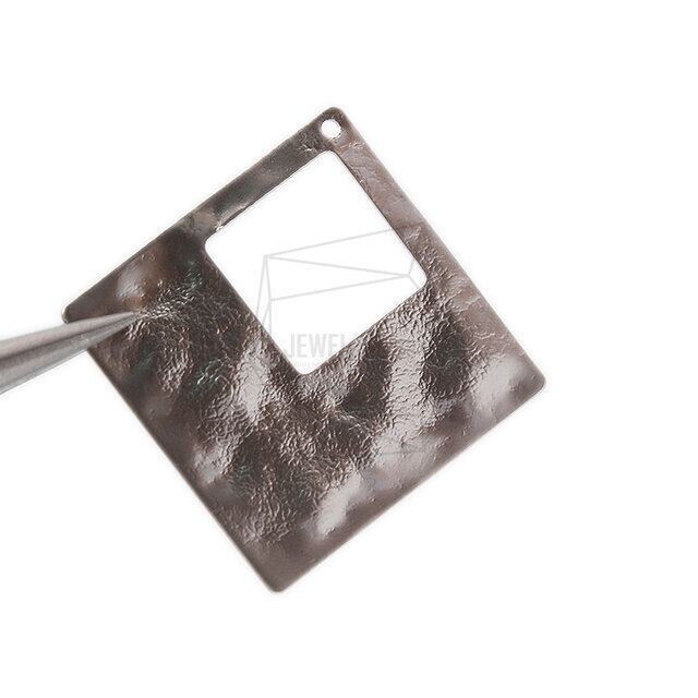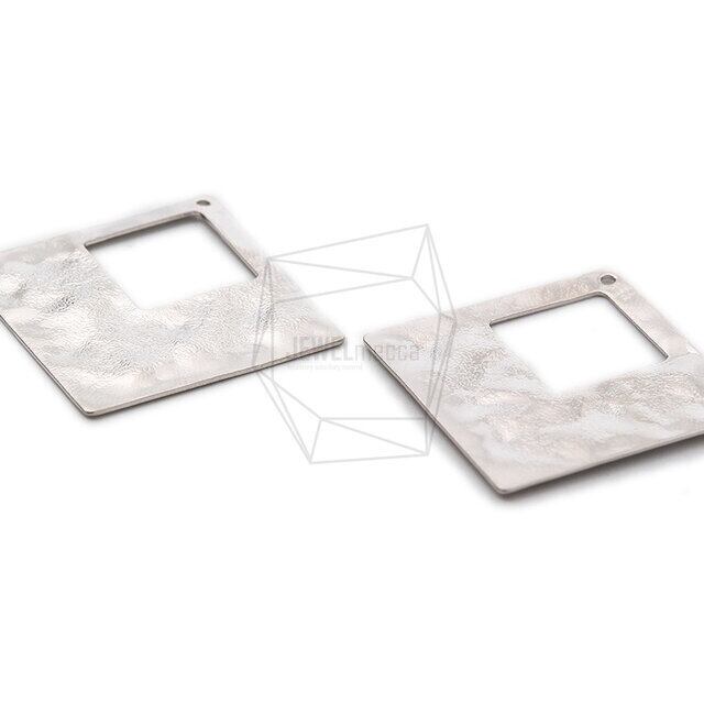 PDT-2013-MR/2PCS/Hammered Rectangle Pendant/35mm X 35mm/Matte Rhodium Plated Over Brass