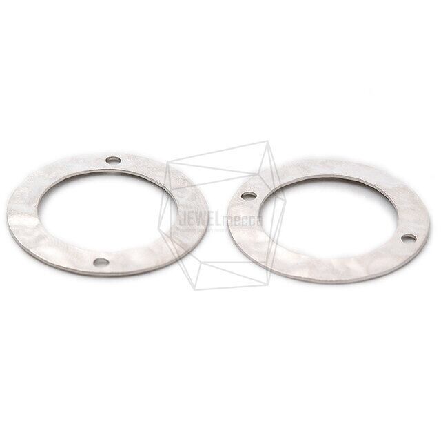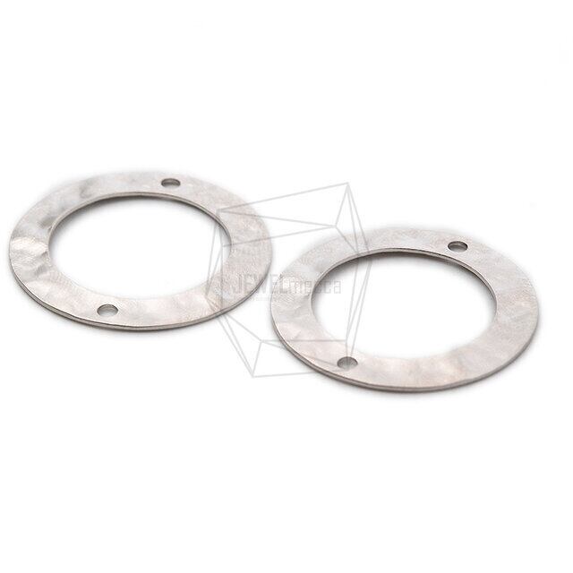 PDT-2014-MR/4PCS/Hammered Round Pendant/25mm X 25mm/Matte Rhodium Plated Over Brass
