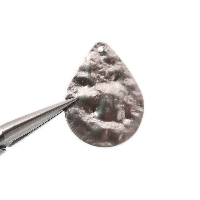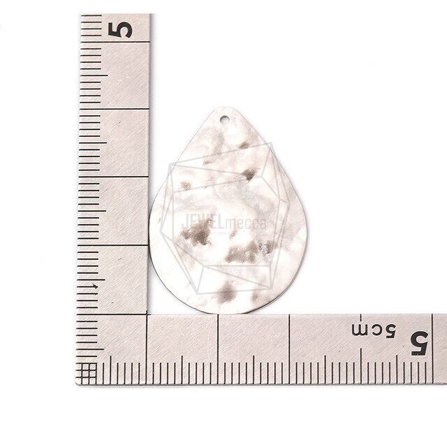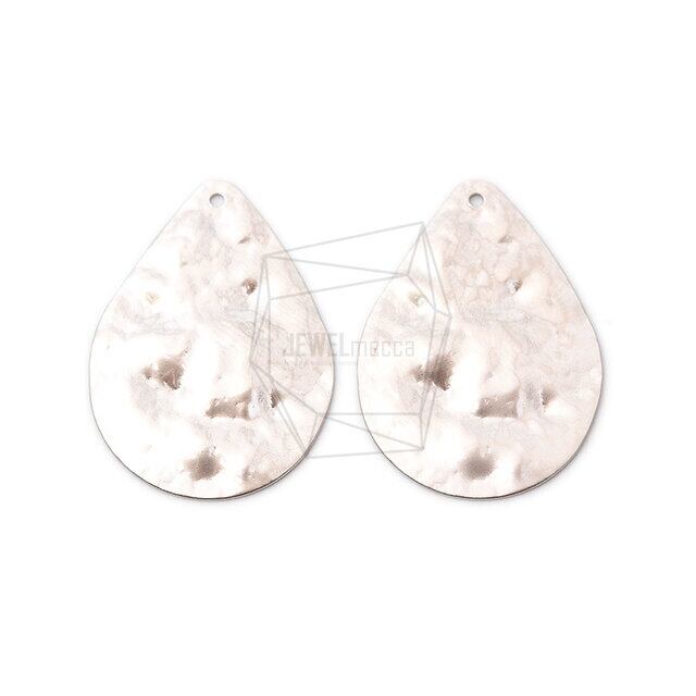 PDT-2016-MR/4PCS/Hammered Water Drop Pendant/23mm X 30mm/Matte Rhodium Plated Over Brass