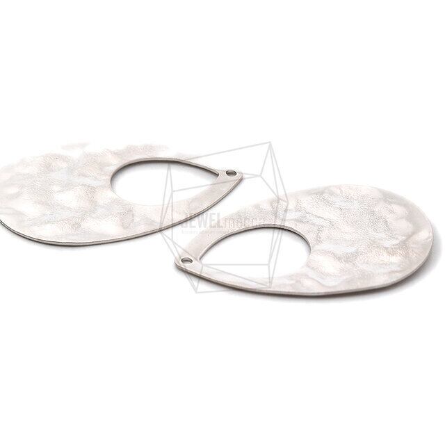 PDT-2020-MR/4PCS/Hammered WaterDrop Pendant/22mm X 35mm/Matte Rhodium Plated Over Brass