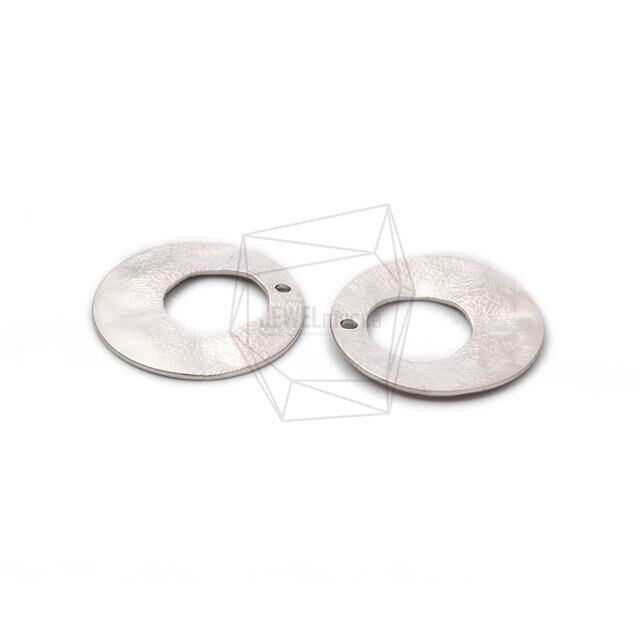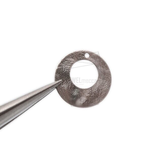 PDT-2022-MR/4PCS/Hammered Round Pendant/15mm X 15mm/Matte Rhodium Plated Over Brass