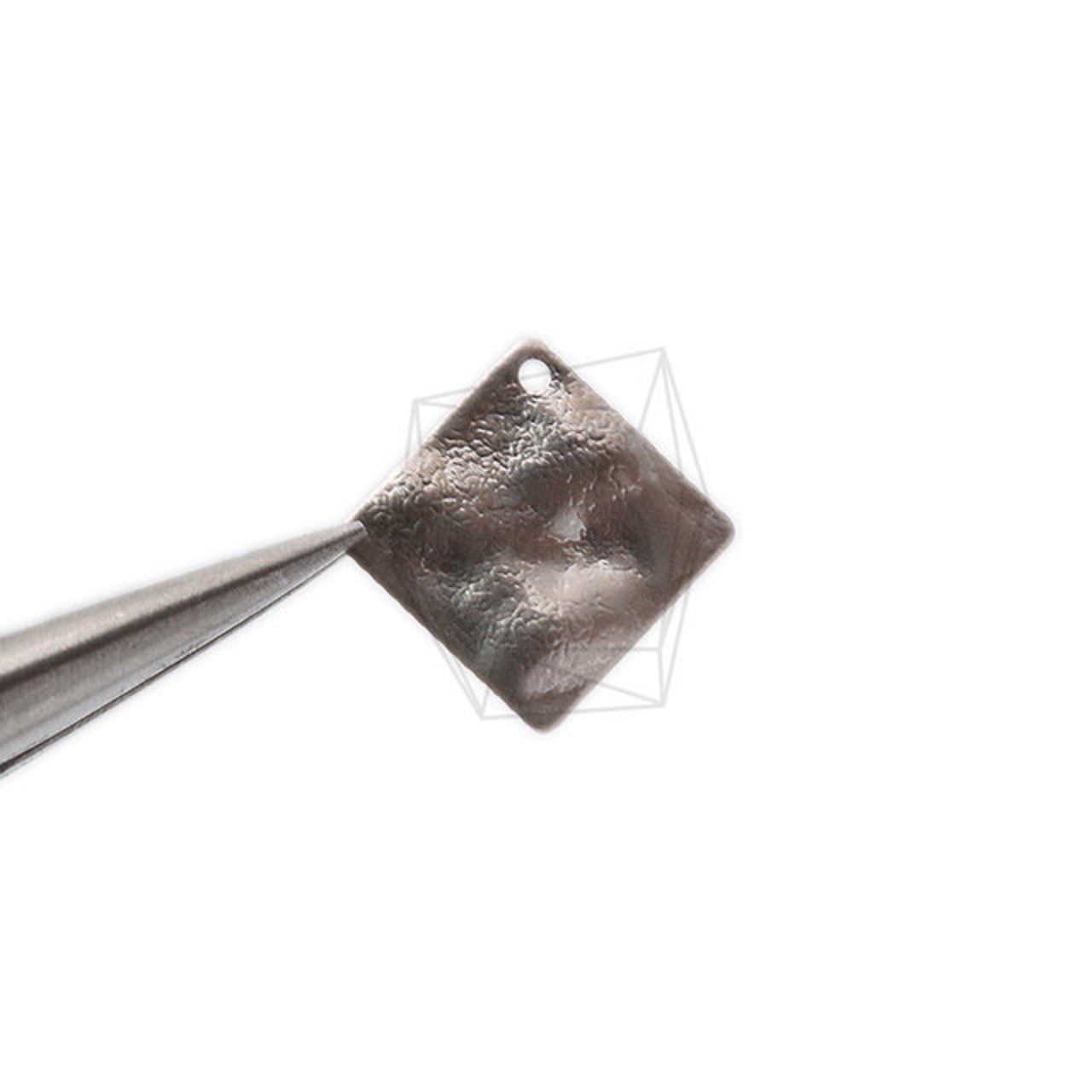PDT-2023-MR/4PCS/Hammered Square Pendant/15mm X 15mm/Matte Rhodium Plated Over Brass