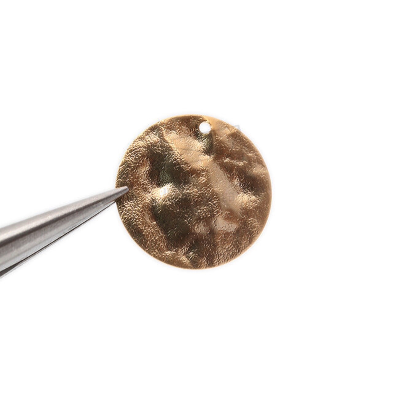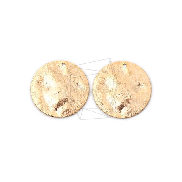 PDT-2025-MG/4PCS/Hammered Round Pendant/20mm X 20mm/Matte Gold Plated Over Brass