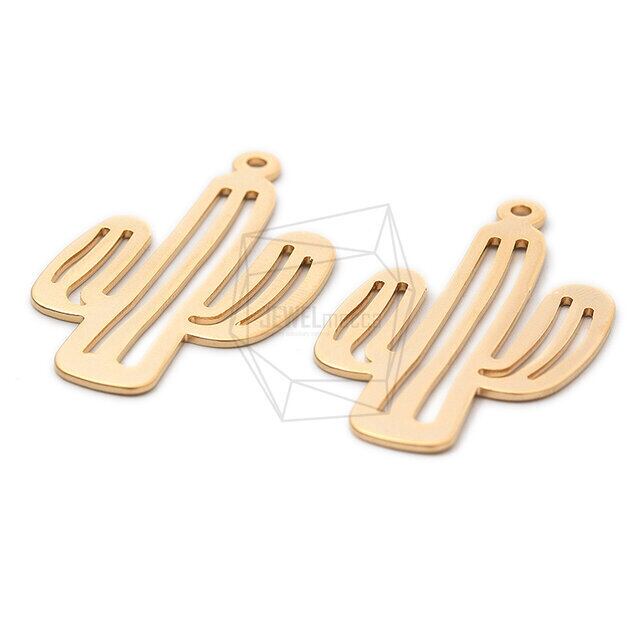 PDT-2030-MG/2PCS/Cactus Pendant/25mm X 45mm/Matte Gold Plated Over Brass