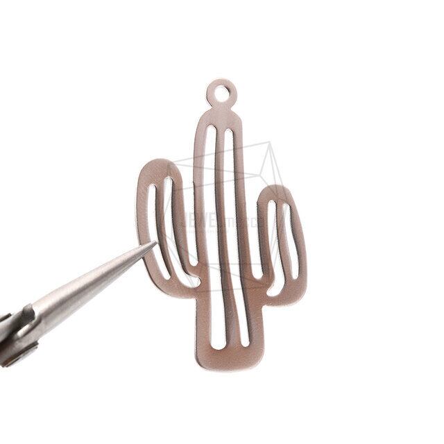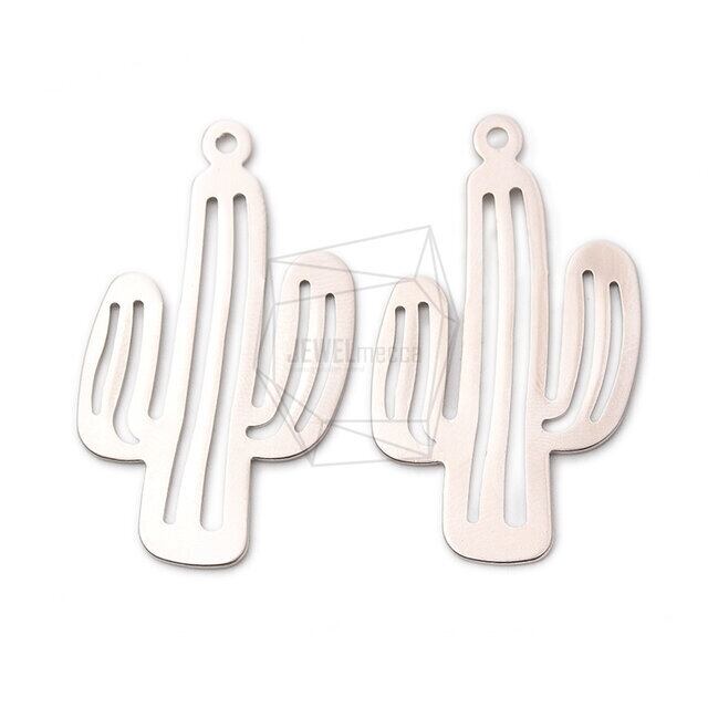 PDT-2030-MR/2PCS/Cactus Pendant/25mm X 45mm/Matte Rhodium Plated Over Brass