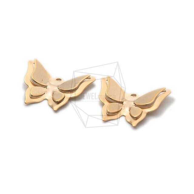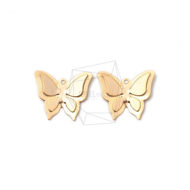 PDT-2031-MG/4PCS/3D Butterfly Pendant/20mm X 18mm/Matte Gold Plated Over Brass