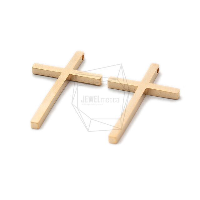PDT-2034-MG/2PCS/Thin Cross Pendant/22mm X 40mm/Matte Gold Plated Over Brass