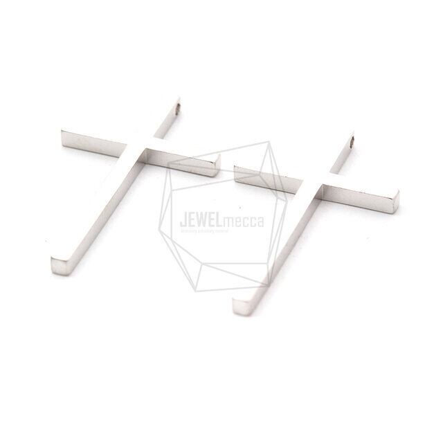PDT-2034-MR/2PCS/Thin Cross Pendant/22mm X 40mm/Matte Rhodium Plated Over Brass