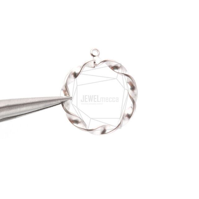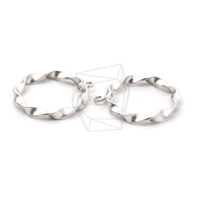 PDT-2048-MR/2PCS/Twisted Round Pendant/22mm X 22mm/Matte Rhodium Plated Over Brass