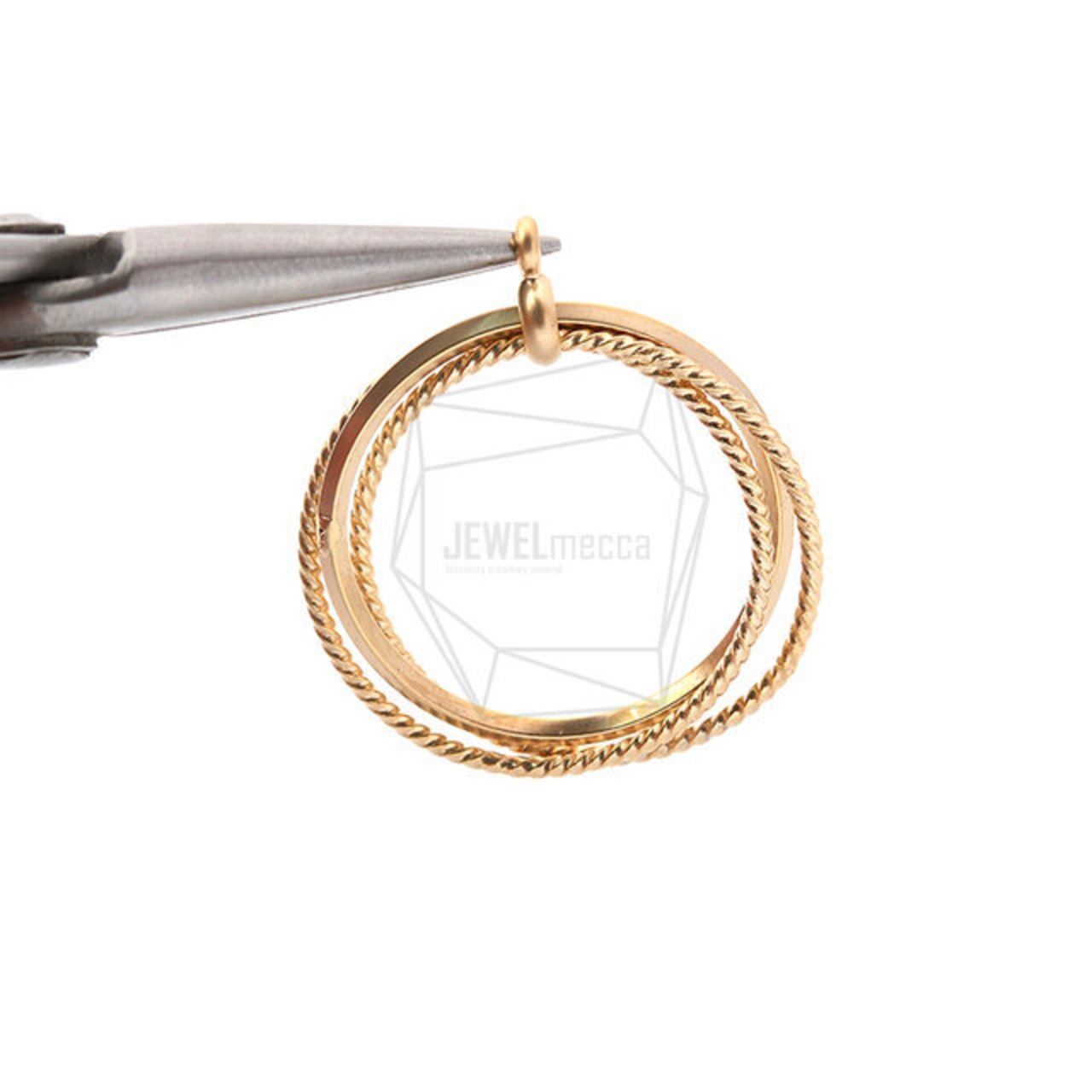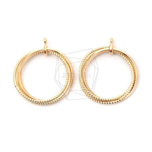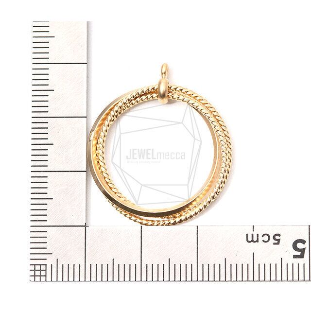 PDT-2049-MG/2PCS/Three Round Ring Pendant/25mm X 25mm/Matte Gold Plated Over Brass
