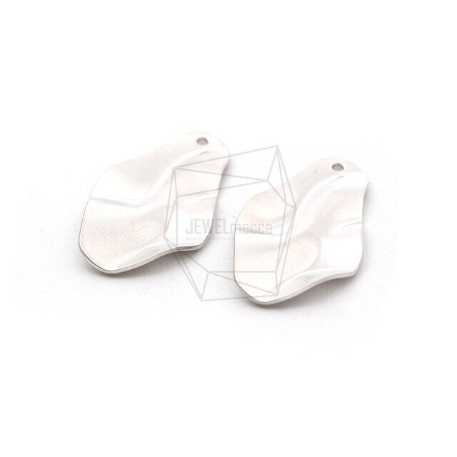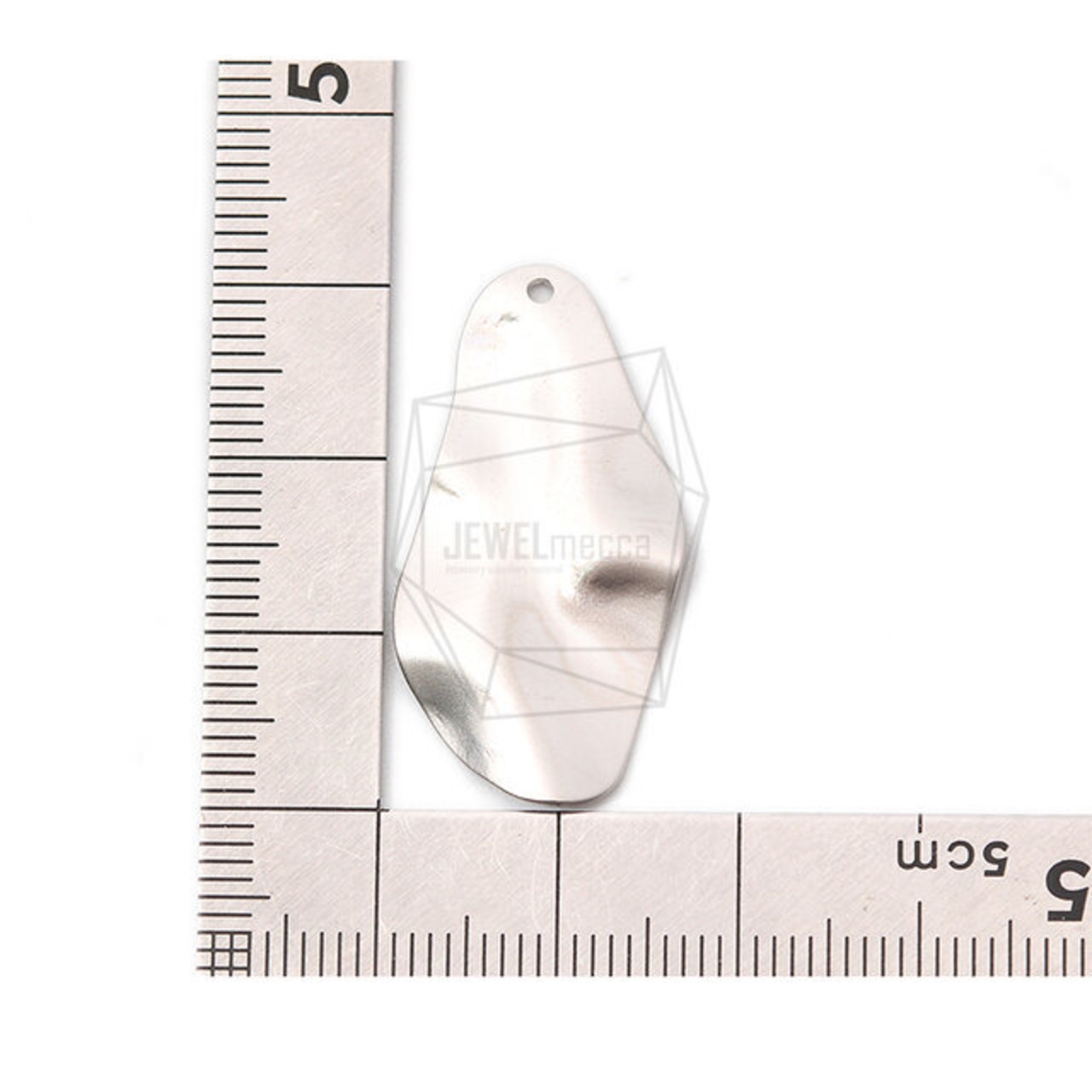 PDT-2053-MR/2PCS/Hammered Round Pendant/15mm X 31mm/Matte Rhodium Plated Over Brass