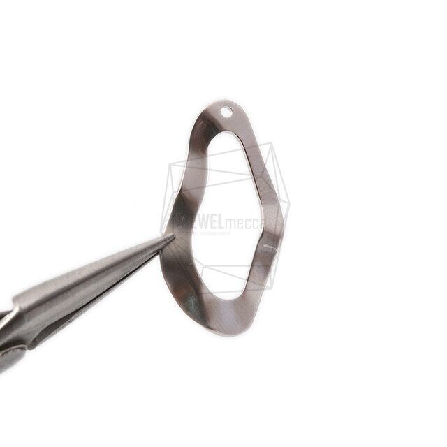 PDT-2054-MR/4PCS/Hammered Round Pendant/17mm X 31mm/Matte Rhodium Plated Over Brass