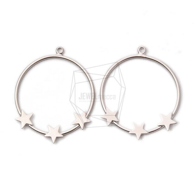 PDT-2055-MR/2PCS/Stars Shaped Round Pendant/27mm X 30mm/Matte Rhodium Plated Over Brass
