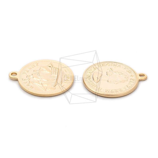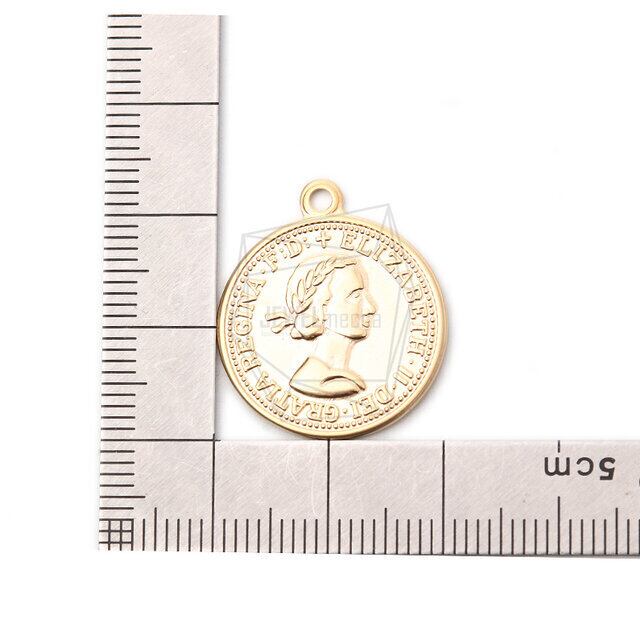 PDT-2065-MG/2PCS/Coin Pendant/20mm x 23mm/Matte Gold Plated Over Brass