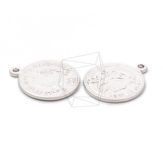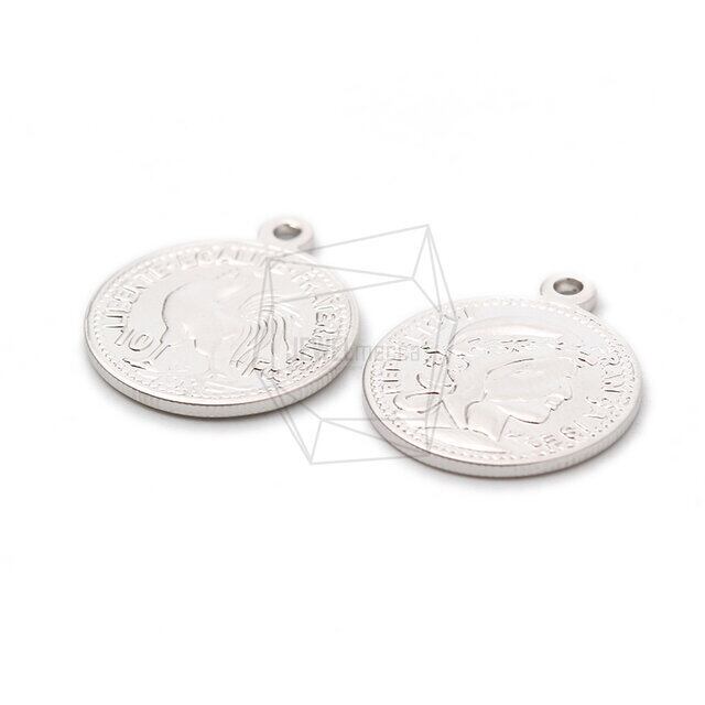 PDT-2066-MR/2PCS/Coin Pendant/20mm x 23mm/Matte Rhodium Plated Over Brass