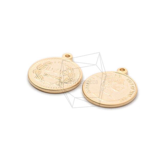 PDT-2067-MG/2PCS/Coin Pendant/17mm x 19mm/Matte Gold Plated Over Brass