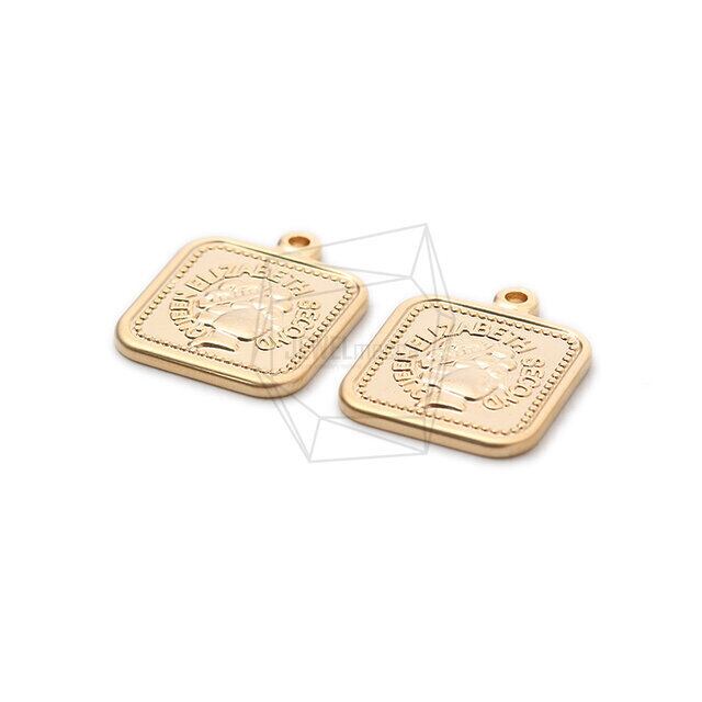 PDT-2074-MG/2PCS/Coin Pendant/15mm x 18mm/Matte Gold Plated Over Brass