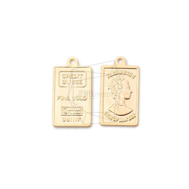 PDT-2075-MG/2PCS/Coin Pendant/12mm x 22mm/Matte Gold Plated Over Brass