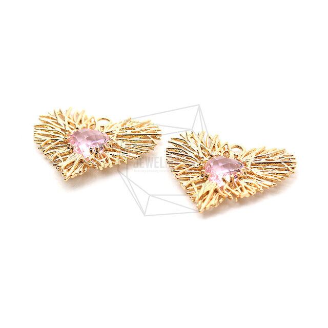 PDT-2085-G/2PCS/Middle Pink Glass Wire Heart Pendant/20mm X 19mm/Gold Plated Over Brass